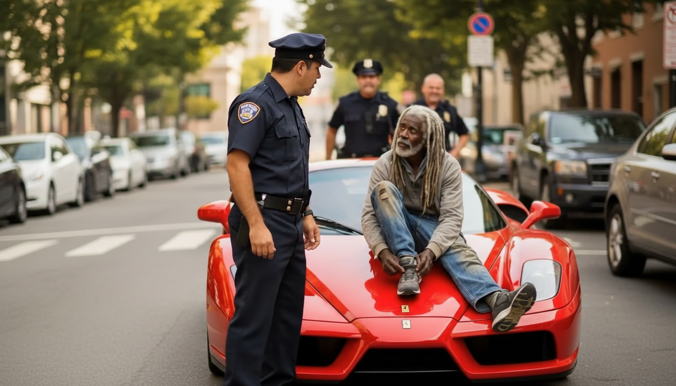 Las apariencias engañan, pero los prejuicios destruyen. En una tarde soleada, frente a una de las avenidas más exclusivas de la ciudad, se estacionó un flamante Ferrari Enzo rojo. El brillo de su carrocería era casi cegador, un símbolo de estatus que atraía las miradas de todos los transeúntes. Sin embargo, lo que realmente llamó la atención no fue el coche, sino el hombre que decidió sentarse sobre su capó.