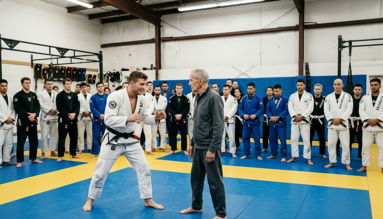 En el vibrante corazón de la ciudad, el dojo "Guerreros de Acero" era famoso por su disciplina. Sin embargo, Julián, el alumno más joven y talentoso, había permitido que el orgullo nublara su juicio. Con apenas 22 años, su fuerza física era imponente, pero su arrogancia era aún mayor. Un martes por la tarde, un hombre de setenta años llamado Don Samuel entró al tatami. No vestía un kimono lujoso, sino una sencilla sudadera gris.